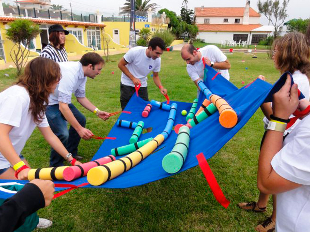 Nesta ação dinâmica, propomos várias dinâmicas de grupo corporativas divertidas, focadas em fomentar e desenvolver competências comportamentais como identidade do grupo, espírito de cooperação, comunicação, confiança, liderança e outras.